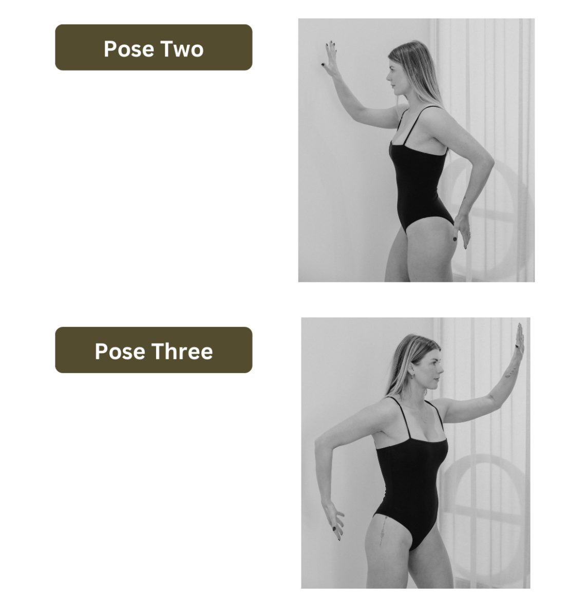 She says: ‘Turn right and stand with your toes on number 3 and your heels on number 4.’