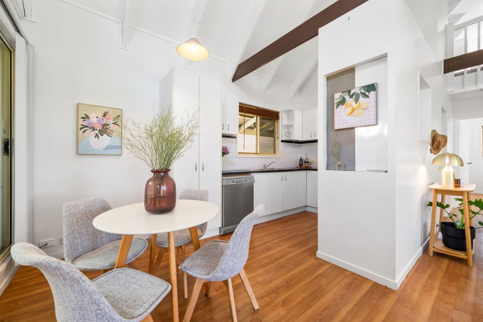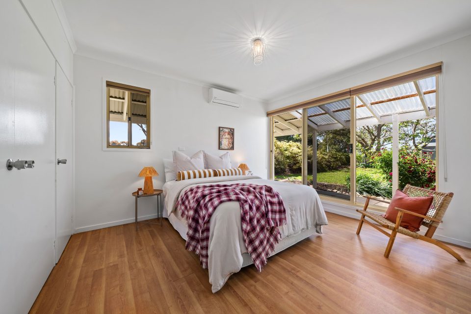 Both bedrooms are spacious with leafy garden views. The downstairs master offers built-in storage and direct access to the backyard, while the upstairs loft has a peaceful atmosphere perfect for guests.