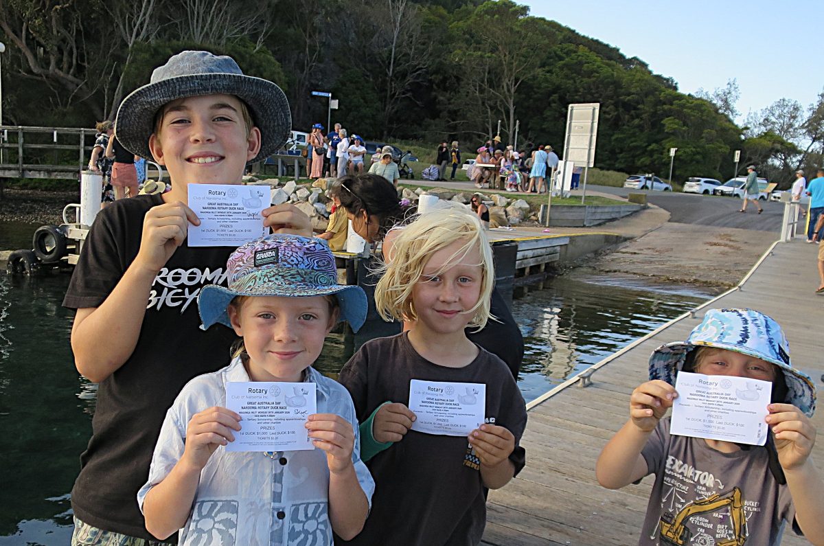 After a flying start off Narooma Bridge, almost all 1000 entrants in this year’s Great Australia Day Narooma Rotary Duck Race slowly drifted north and took refuge in Mill Bay.